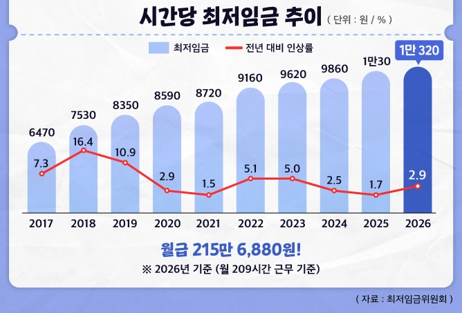 ✅2026년 최저임금이 1만 320원으로 결정됐어요.