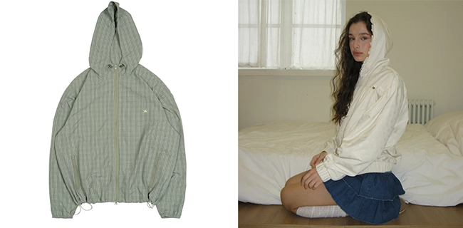 바람막이하면, 왠지 힙하게 입어야 할 것 같잖아요. 이 바람막이는 그렇지 않습니다. 모자를 썼을 때 보이는 프릴이 러블리한 무드를 만들어줘요. 아이보리 색상은 화사하게 코디를 살려주는데요.🤩 햇빛을 받으면 은은하게 반사되는 도트 무늬까지! 요즘 유행하는 포인트 총집합한 바람막이죠? 💰가격은 144,000원.