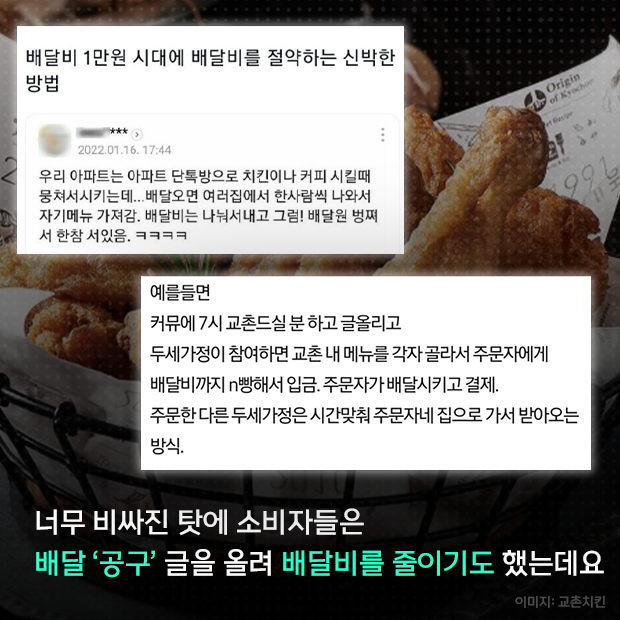 2022.01.21 share 카카오톡 라인 페이스북 트위터 복사 스크랩 좋아요7 갈수록 비싸지는 배달비 배달 ‘공구’까지 등장? #배달 #배달비 #배달수수료 #배달요금 Prev 미술관에서 네일·미용을? Next 영국은 이제 NO 마스크! 목록 주간 인기 카드뉴스 비공개: “소주는 살 안 쪄~” 같은 소리는 이제 멈춰✋ 보러가기 비공개: “소주는 살 안 쪄~” 같은 소리는 이제 멈춰✋ 2022.01.17 비공개: 강알리 등킨드나쓰보다 더 핫하고 힙한 도넛 맛집 🐮🐶 보러가기 비공개: 강알리 등킨드나쓰보다 더 핫하고 힙한 도넛 맛집 🐮🐶 2021.12.31