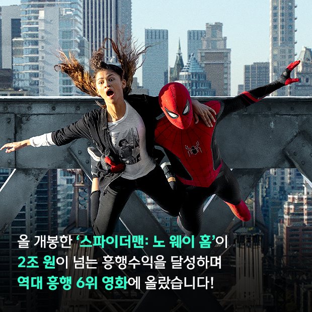 2022.01.24 share 카카오톡 라인 페이스북 트위터 복사 스크랩 좋아요3 스파이더맨, 라이온 킹 제쳤다! #라이온킹 #마블 #스파이더맨 #쥬라기월드 #톰홀랜드 Prev 아시아나 유니폼을 파우치로? Next 미술관에서 네일·미용을? 목록
