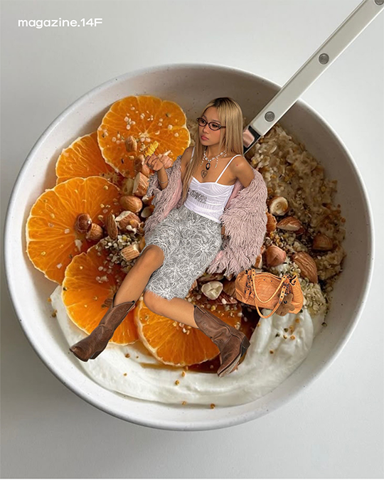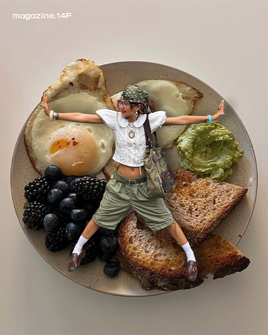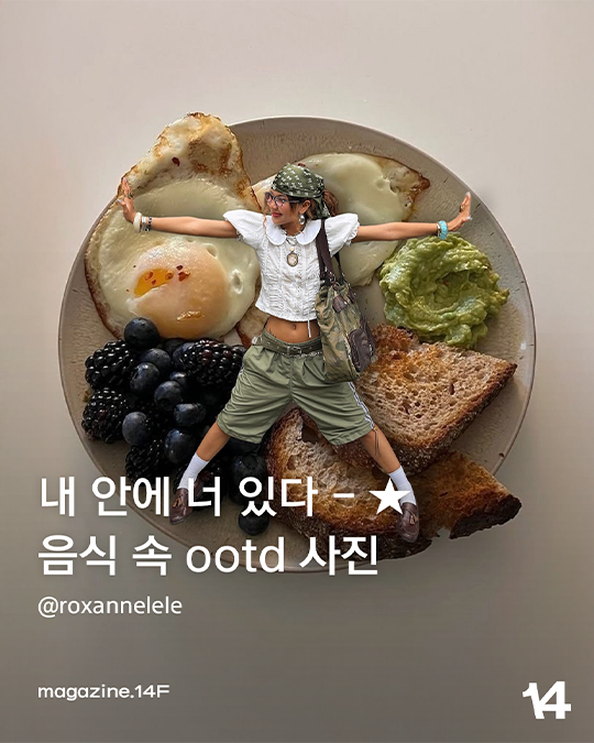 식상한 인증샷은 이제 그만!🙅🏻 음식 사진과 ootd를 한 번에 보여줄 수 있는 방법을 제시한 @roxannelele 를 소개합니다. 그녀는 맛있는 음식 사진 속 자신의 사진을 붙여 넣어 새로운 사진을 만들어 냈는데요.🍜 빵 위에 앉거나 따뜻한 국물 속에서 반신욕을 즐기는 등 음식과 조화로운 것이 이 사진의 포인트! 음식의 색과 옷의 컬러를 맞춰봐도 좋겠네요.👀