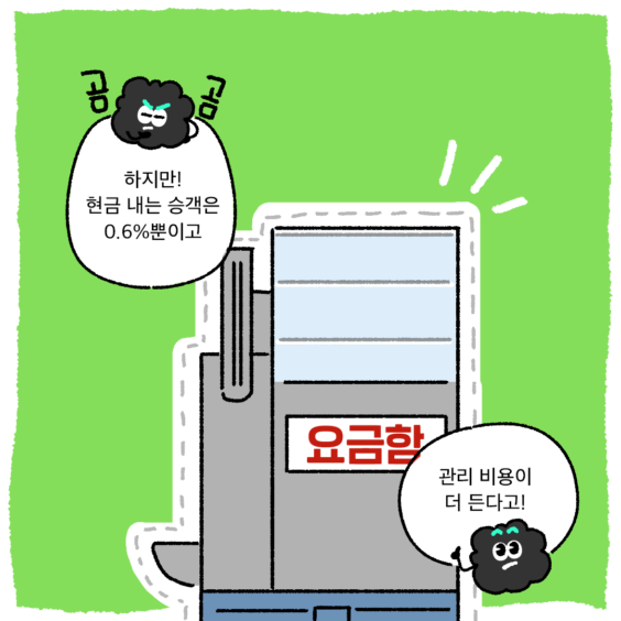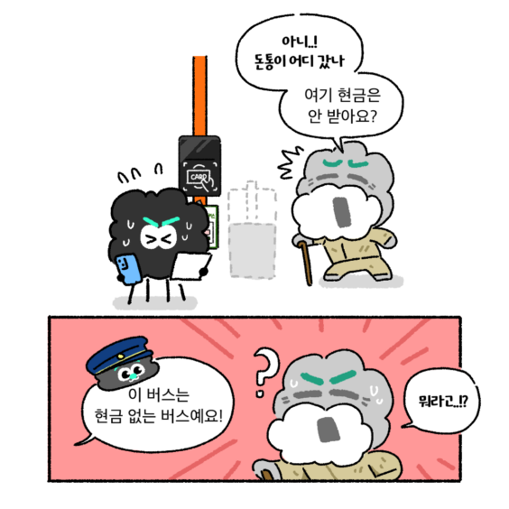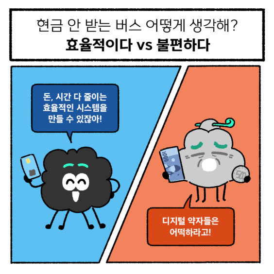 2023.03.28 share 카카오톡 라인 페이스북 트위터 복사 좋아요1 현금 안 받는 버스 어떻게 생각해? 현금 안 받는 버스 어떻게 생각해? 💳교통카드를 두고 온 그런지! 버스를 타려는데버스에서 현금을 안 받는대요! 현금 없는 버스🚌효율적이다🙆♀ vs 불편하다🙅♀ 사원님은 어떻게 생각하세요? 🤷♀ 89 효율적이다 170 불편하다 지금 0개의 톡크가 진행중이야 Reset 등록 더보기 목록