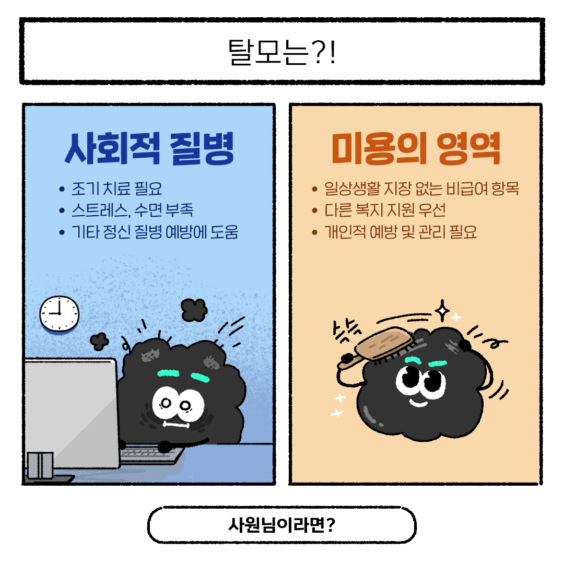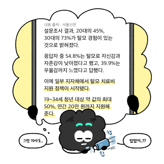 2023.05.09 share 카카오톡 라인 페이스북 트위터 복사 좋아요0 탈모는 사회적 질병일까?! 탈모는 사회적 질병일까?! 취업 준비, 잦은 야근으로🤯그동안 스트레스가 많이 쌓인 그런지 그래서인지 탈모가 생긴 것 같아걱정이래요😰 탈모는사회적 질병이다!🩹vs미용의 영역이다!💄 사원님의 의견이 궁금해요! 133 사회적 질병 54 미용의 영역 지금 0개의 톡크가 진행중이야 Reset 등록 더보기 목록